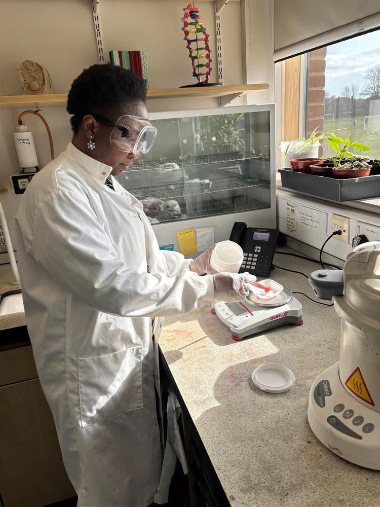 Weighing some sodium hydroxide pellets to make solutions for chemistry practical from Mosunmola (Science Technician) (27/03/2025 11:36)