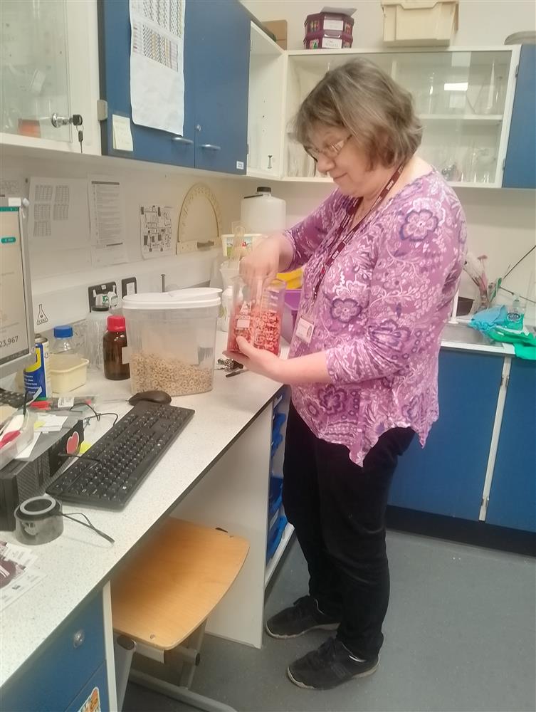 Preparing red blood cells (dyed Cheerios) for a blood model! from Pittville School (Science Technician) (27/03/2025 11:23)