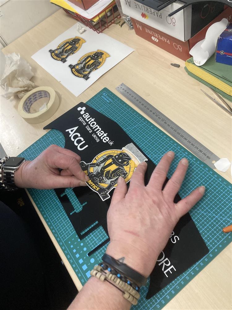 Applying sponsor logos and graphics to the acrylic sides of the robot - INTO THE DEEP RTX Challenge from Dan Kennish (Technology (D and T) Technician) (27/03/2025 11:13)