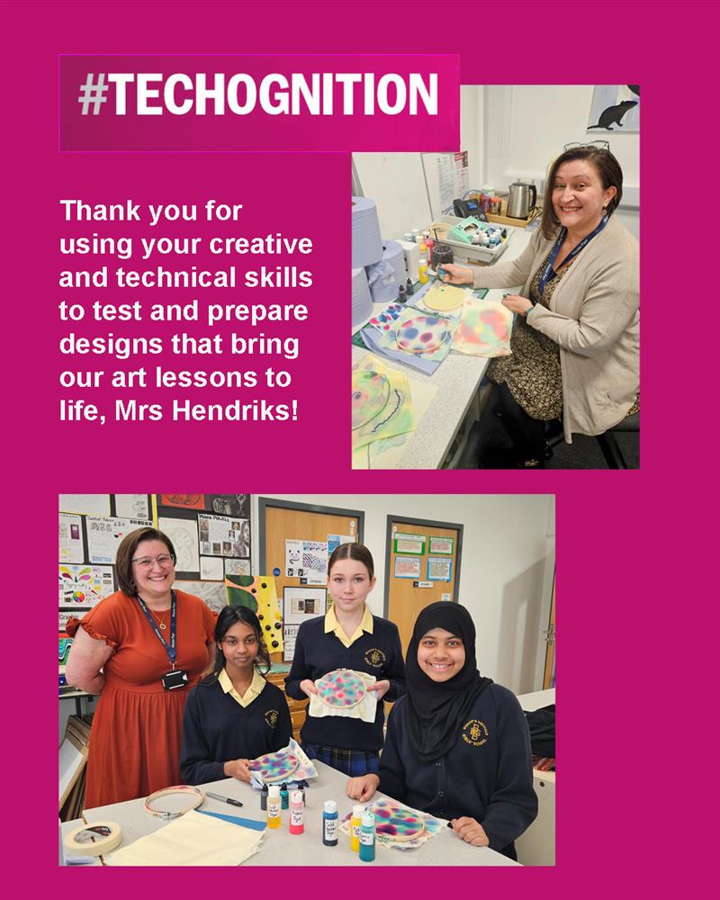 Mrs Hendriks, our art technician, spent hours testing fabric dyes for our Year 7 bunting project from Bishop's Hatfield Girls' School (School Leader) (27/03/2025 10:57)