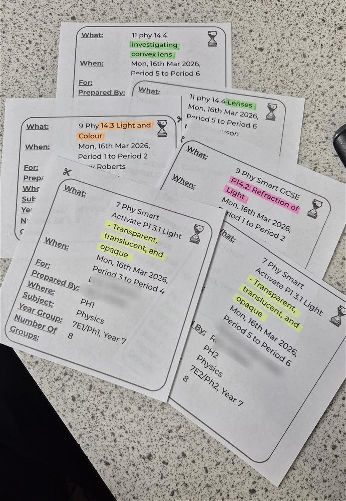 Lesson requests for next week (plus a few Techognition stickers)! from Lesley (Science Technician) (13/03/2026 15:03)