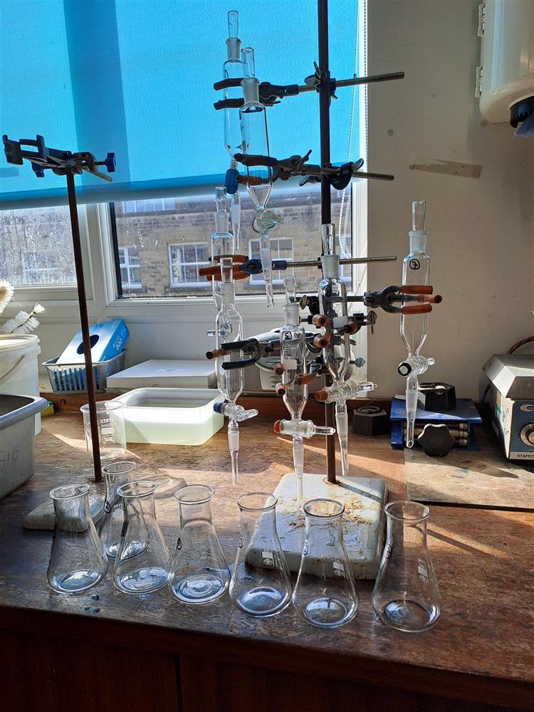 Bringing out all the separating funnels for our A Level chemistry students from Ermysted's Techs (Science Technician) (13/03/2026 15:03)