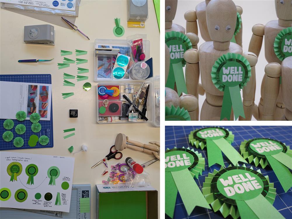 Awards Trophies. Each rosette I individually made. Homemade stamps, precision cutting, & hot glue! from Millie (Art and Design Technician) (13/03/2026 14:27)