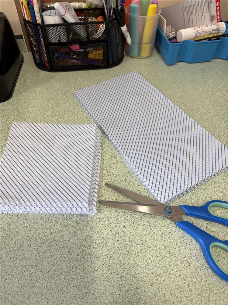 Nice little sit down job at the end of a busy week - cutting up cloths for student whiteboards from Debbie (Science Technician) (13/03/2026 14:27)