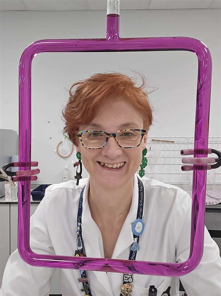 Happy technician having just demonstrated convection currents with potassium manganate. from Ribs Norman (Science Technician) (13/03/2026 14:49)