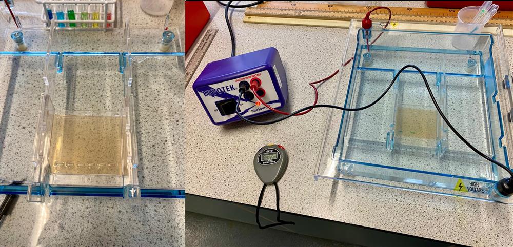 Trialling gel electrophoresis using dyes from Sheena (Science Technician) (27/03/2025 12:21)