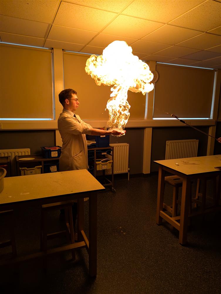 Mr. Fischer doing a demo of the hydrogen balloon. from Mr. Fischer (Science Technician) (27/03/2025 12:23)