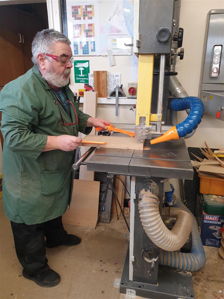 DT Technician cutting wood for a student from Sawston Technicians (Technology (D and T) Technician) (13/03/2026 11:50)