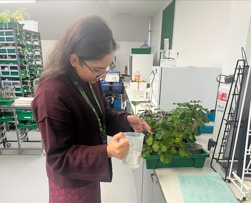 Technician watering our geraniums, used for stomatal peels and leaf chromatography! from Borough Academy (Science Technician) (13/03/2026 11:31)
