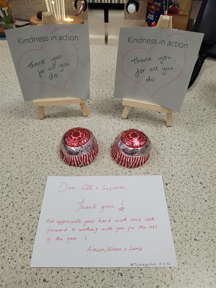 From our SLT. How lovely. from ICC Tech team (Science Technician) (13/03/2026 11:20)