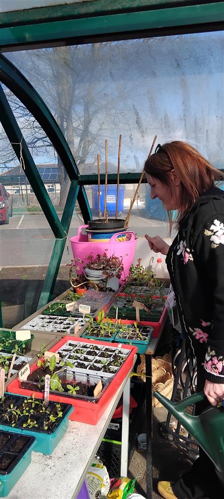 Gill prepping plants in our greenhouse (bike shed!) to re-wild an area for better ecology lessons from Vicky (Science Technician) (13/03/2026 11:24)